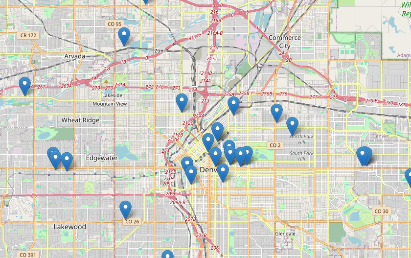 SAME CAFÉ: 2023 E. Colfax Ave; 720-530-6853; Restaurant serving mostly organic food—not free, but pay what you can or work off your meal in the kitchen; Open Mon.-Sat., 11am to 2pm; Closed Sun. & holidays; soallmayeat.org